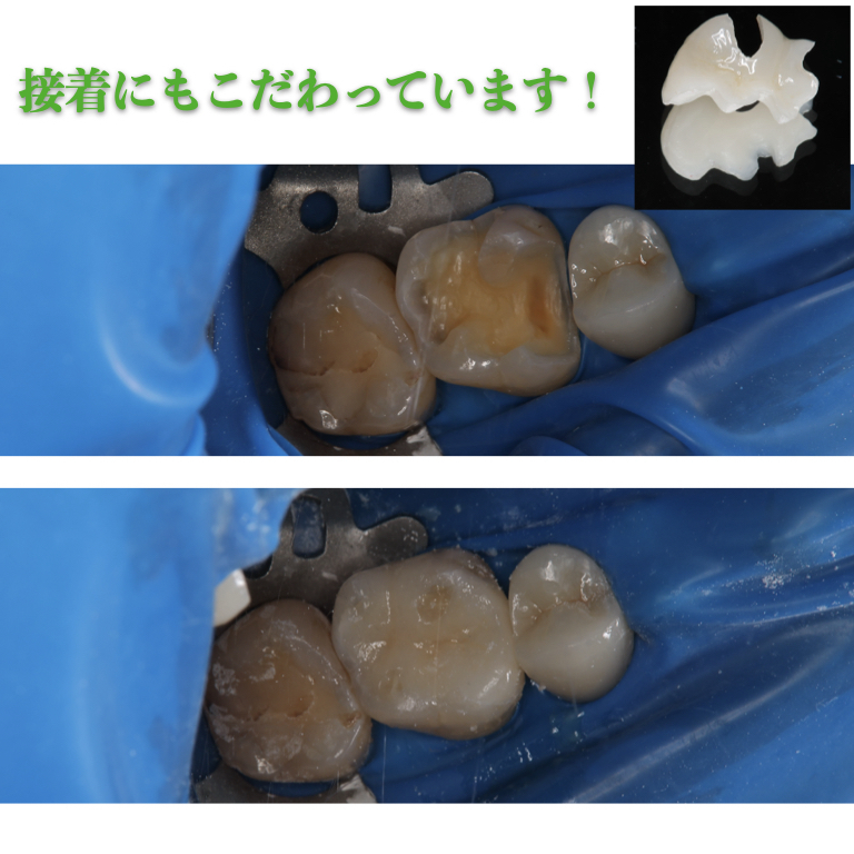 当院では、セラミックやジルコニアなどの詰め物・被せ物を装着する際、可能な限り「ラバーダム防湿」を行っています。